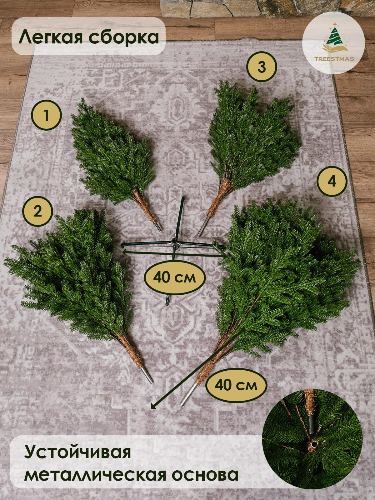 Елка искусственная новогодняя "Альпийская" 180 см Тип: Елка искусственная Вид елки: Напольная Конструкция елки: Ствольная Высота, см: 180 Ширина нижнего яруса, см: 110 Материалы: 100% литье Страна производителя: Россия Особенности и преимущества: • Производство известной Российской фабрики "Елка от белки" под брендом “TREESTMAS” гарантирует соответствие высокого качества и доступной цены. Все елки имеют соответствующие сертификаты! • Реалистичный дизайн: Веточка данной елки полностью имитирует ветку настоящей ели имеющую 5 отростков, что придает ей объем и натуральность, каждая иголочка как настоящая. • Высокое качество материалов: Ёлка изготовлена методом литья из первичного материала что обеспечивает долгий срок службы и безопасность для всей семьи. • Простота сборки: Сборка ёлки занимает всего несколько минут благодаря удобной ствольной конструкции. • Различные размеры: В наличии ёлки высотой от 150 см до 210 см, что позволяет выбрать идеальный вариант для любого помещения. • Многофункциональность: Подходит как для внутреннего, так и для наружного использования. Устойчива к влаге и перепадам температур. Почему выбирают искусственную ёлку "Кремлёвская": • Экономия времени и средств: Нет необходимости каждый год покупать живую ёлку и убирать опавшие иголки. • Эко-дружелюбность: Сохраняем леса и заботимся о природе. • Эстетика: Великолепный внешний вид, который не теряет привлекательности с годами.