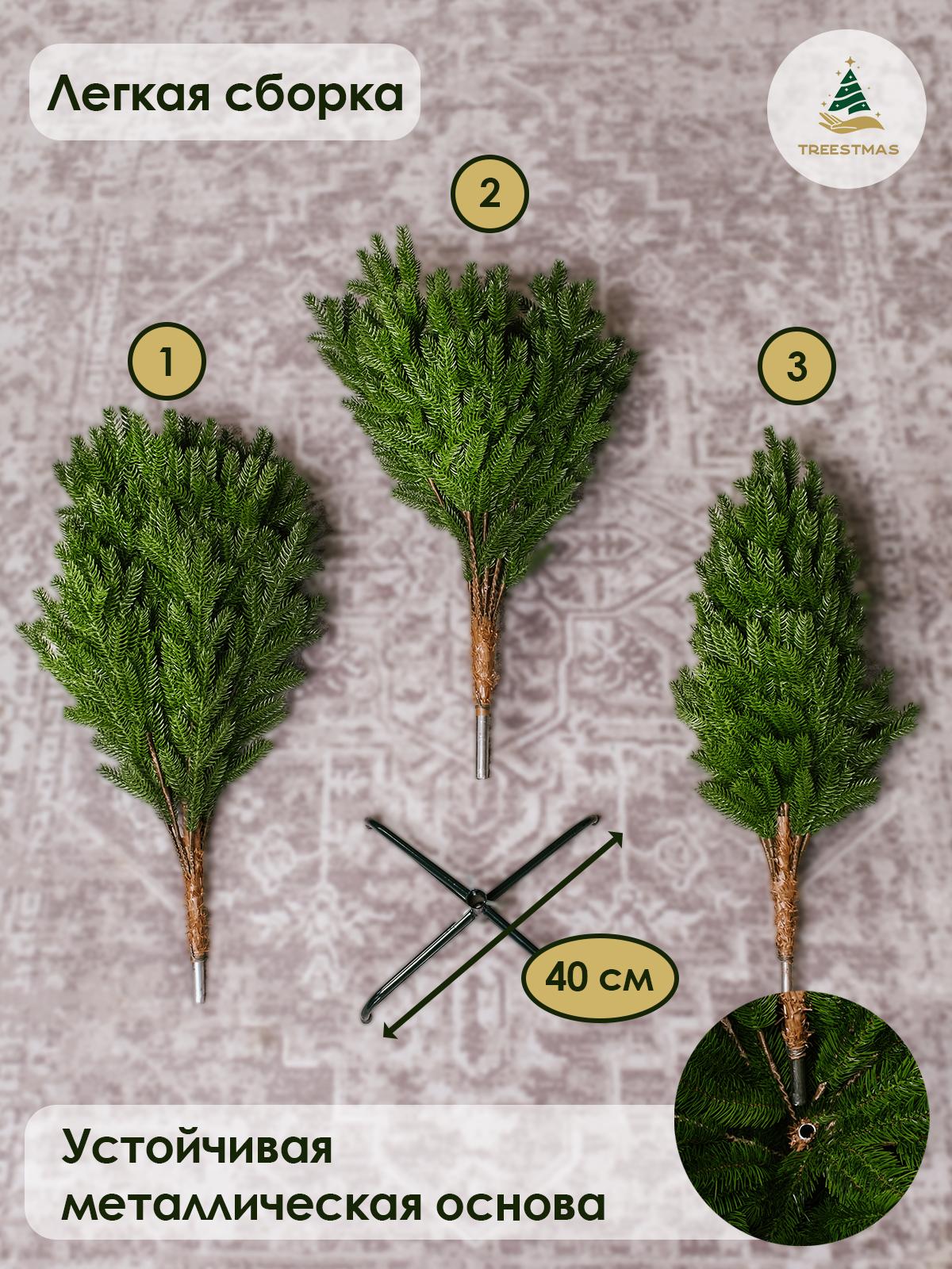 Елка искусственная новогодняя "Альпийская" 150 см Тип: Елка искусственная Вид елки: Напольная Конструкция елки: Ствольная Высота, см: 150 Ширина нижнего яруса, см: 94 Материалы: 100% литье Страна производителя: Россия Особенности и преимущества: • Производство известной Российской фабрики "Елка от белки" под брендом “TREESTMAS” гарантирует соответствие высокого качества и доступной цены. Все елки имеют соответствующие сертификаты! • Реалистичный дизайн: Веточка данной елки полностью имитирует ветку настоящей ели имеющую 5 отростков, что придает ей объем и натуральность, каждая иголочка как настоящая. • Высокое качество материалов: Ёлка изготовлена методом литья из первичного материала что обеспечивает долгий срок службы и безопасность для всей семьи. • Простота сборки: Сборка ёлки занимает всего несколько минут благодаря удобной ствольной конструкции. • Различные размеры: В наличии ёлки высотой от 150 см до 210 см, что позволяет выбрать идеальный вариант для любого помещения. • Многофункциональность: Подходит как для внутреннего, так и для наружного использования. Устойчива к влаге и перепадам температур. Почему выбирают искусственную ёлку "Кремлёвская": • Экономия времени и средств: Нет необходимости каждый год покупать живую ёлку и убирать опавшие иголки. • Эко-дружелюбность: Сохраняем леса и заботимся о природе. • Эстетика: Великолепный внешний вид, который не теряет привлекательности с годами.