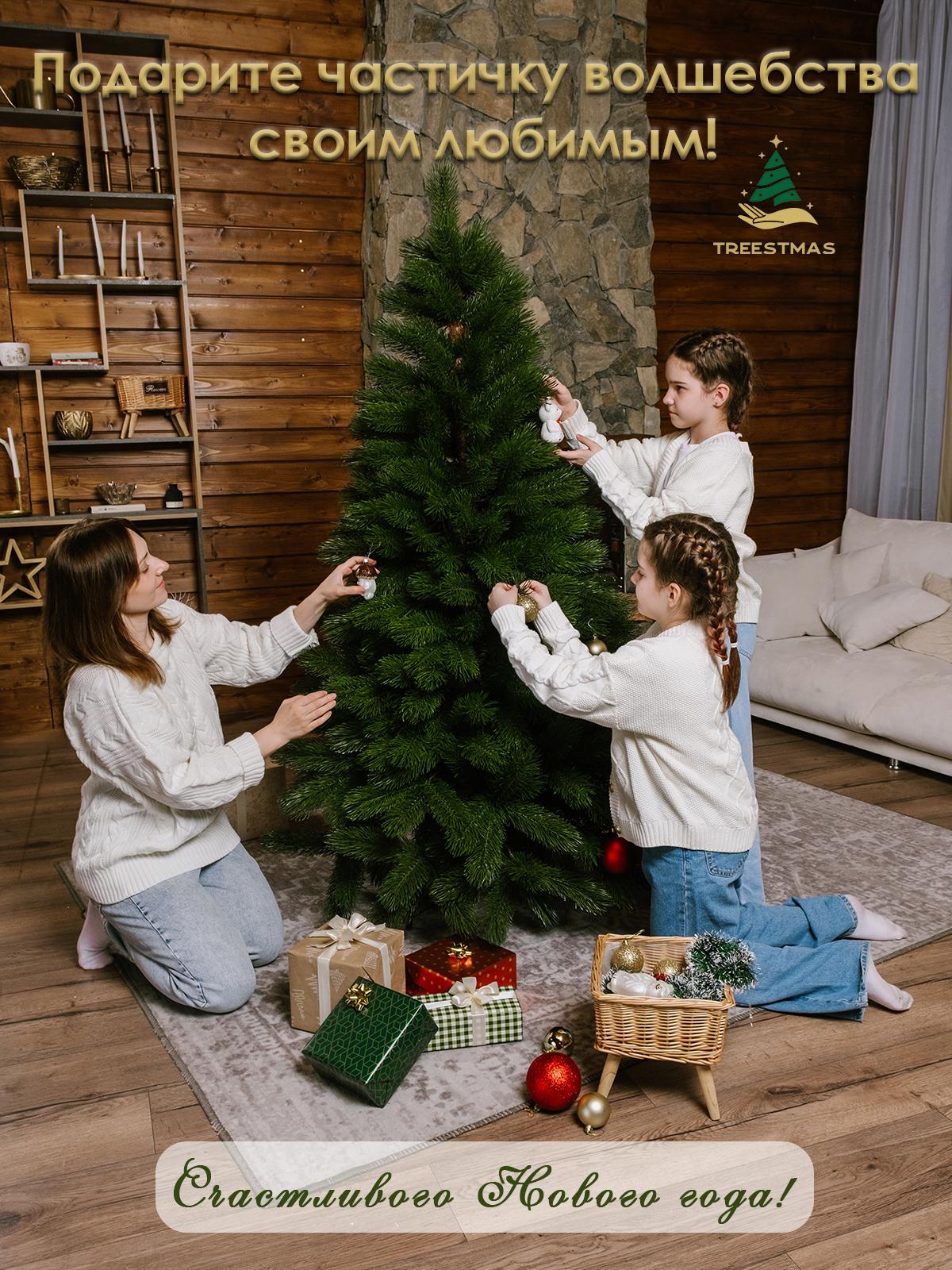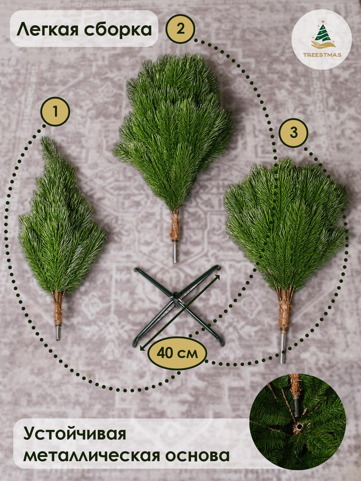 Елка искусственная новогодняя "Крымская" 150 см Тип: Елка искусственная Вид елки: Напольная Конструкция елки: Ствольная Высота, см: 150 Ширина нижнего яруса, см: 92 Материалы: 100% литье Страна производителя: Россия Особенности и преимущества: • Производство известной Российской фабрики "Елка от белки" под брендом “TREESTMAS” гарантирует соответствие высокого качества и доступной цены. Все елки имеют соответствующие сертификаты! • Реалистичный дизайн: Веточка данной елки полностью имитирует ветку настоящей ели имеющую 5 отростков, что придает ей объем и натуральность, каждая иголочка как настоящая. • Высокое качество материалов: Ёлка изготовлена методом литья из первичного материала что обеспечивает долгий срок службы и безопасность для всей семьи. • Простота сборки: Сборка ёлки занимает всего несколько минут благодаря удобной ствольной конструкции. • Различные размеры: В наличии ёлки высотой от 150 см до 210 см, что позволяет выбрать идеальный вариант для любого помещения. • Многофункциональность: Подходит как для внутреннего, так и для наружного использования. Устойчива к влаге и перепадам температур. Почему выбирают искусственную ёлку "Кремлёвская": • Экономия времени и средств: Нет необходимости каждый год покупать живую ёлку и убирать опавшие иголки. • Эко-дружелюбность: Сохраняем леса и заботимся о природе. • Эстетика: Великолепный внешний вид, который не теряет привлекательности с годами.