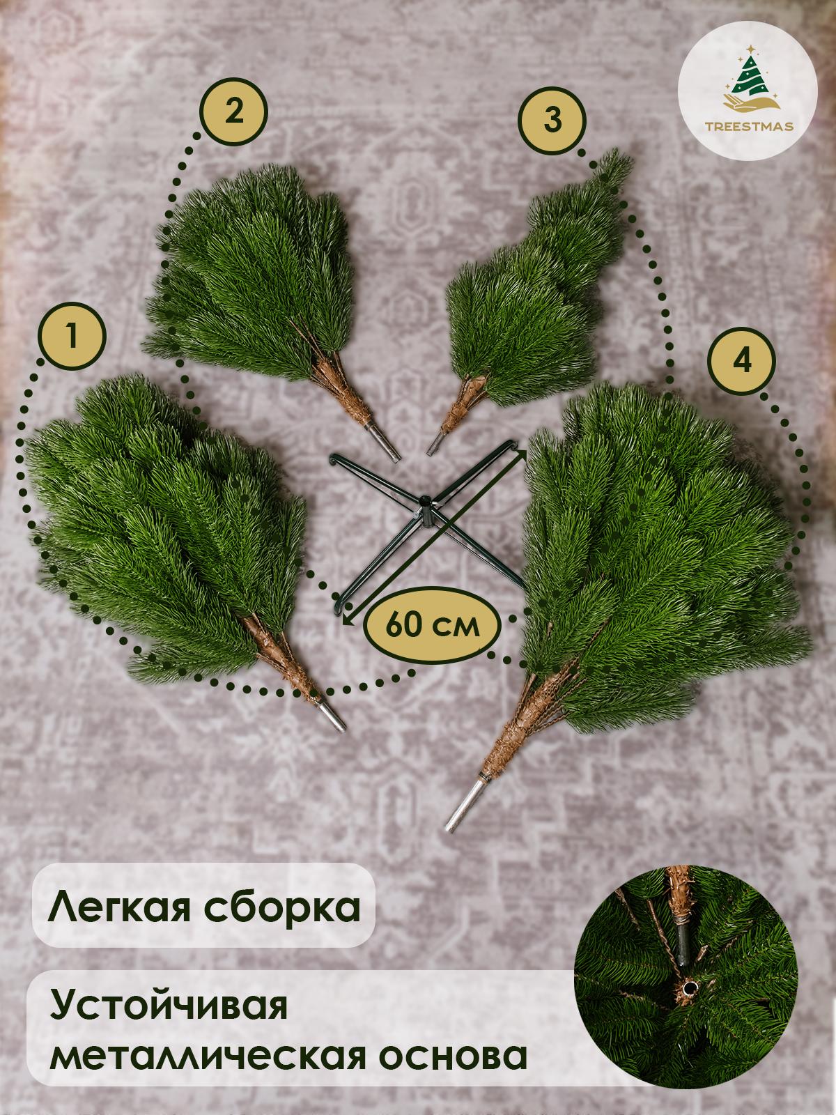 Елка искусственная новогодняя "Крымская" 210 см Тип: Елка искусственная Вид елки: Напольная Конструкция елки: Ствольная Высота, см: 210 Ширина нижнего яруса, см: 122 Материалы: 100% литье Страна производителя: Россия Особенности и преимущества: • Производство известной Российской фабрики "Елка от белки" под брендом “TREESTMAS” гарантирует соответствие высокого качества и доступной цены. Все елки имеют соответствующие сертификаты! • Реалистичный дизайн: Веточка данной елки полностью имитирует ветку настоящей ели имеющую 5 отростков, что придает ей объем и натуральность, каждая иголочка как настоящая. • Высокое качество материалов: Ёлка изготовлена методом литья из первичного материала что обеспечивает долгий срок службы и безопасность для всей семьи. • Простота сборки: Сборка ёлки занимает всего несколько минут благодаря удобной ствольной конструкции. • Различные размеры: В наличии ёлки высотой от 150 см до 210 см, что позволяет выбрать идеальный вариант для любого помещения. • Многофункциональность: Подходит как для внутреннего, так и для наружного использования. Устойчива к влаге и перепадам температур. Почему выбирают искусственную ёлку "Кремлёвская": • Экономия времени и средств: Нет необходимости каждый год покупать живую ёлку и убирать опавшие иголки. • Эко-дружелюбность: Сохраняем леса и заботимся о природе. • Эстетика: Великолепный внешний вид, который не теряет привлекательности с годами.
